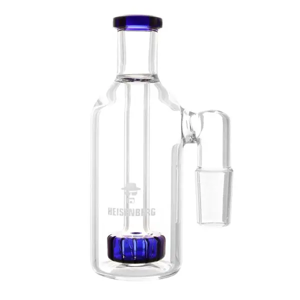 Der Heisenberg Drum-Perc Vorkühler für Glasbongs wird auch als Aschefänger bezeichnet und sorgt mit seinem außergewöhnlichen Drum Perkolator für eine optimale Rauchverteilung. Der Vorkühler besteht aus Borosilikatglas. Er besitzt einen weiblichen Anschluss für Bongköpfe mit 14.5 mm Schliff. Der 18.8 Kernschliff ist senkrecht nach unten angewinkelt. Aus diesem Grund eignet sich der Vorkühler bestens für Bongs mit einem entsprechenden senkrechten Anschluss. Er kann aber auch in Kombination mit seitlich gelegenen Anschlüssen (z.B. 45°) verwendet werden.