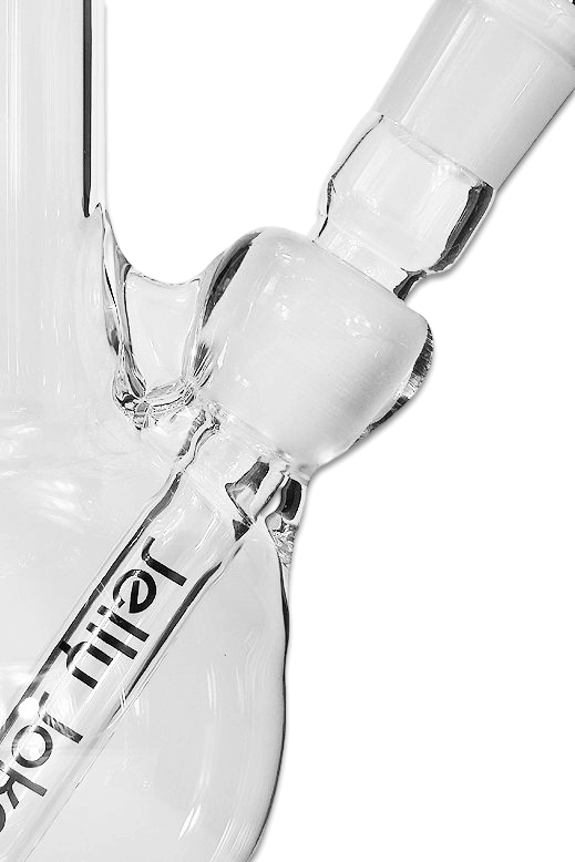 Sanfte Filtration dank Schlitzdiffusor Damit die Hits bei dieser Größe nicht zu heftig ausfallen, liefert Jelly Joker ein 11,5 cm langes Schlitzdiffusor-Chillum mit. Der Rauch wird fein zerstäubt, was die Oberfläche vergrößert und ihn spürbar abkühlt. Das Ergebnis ist ein seidenweiches Raucherlebnis, das trotz der Größe der Bong angenehm im Hals bleibt.